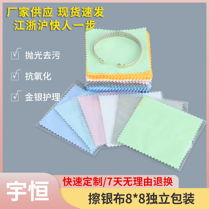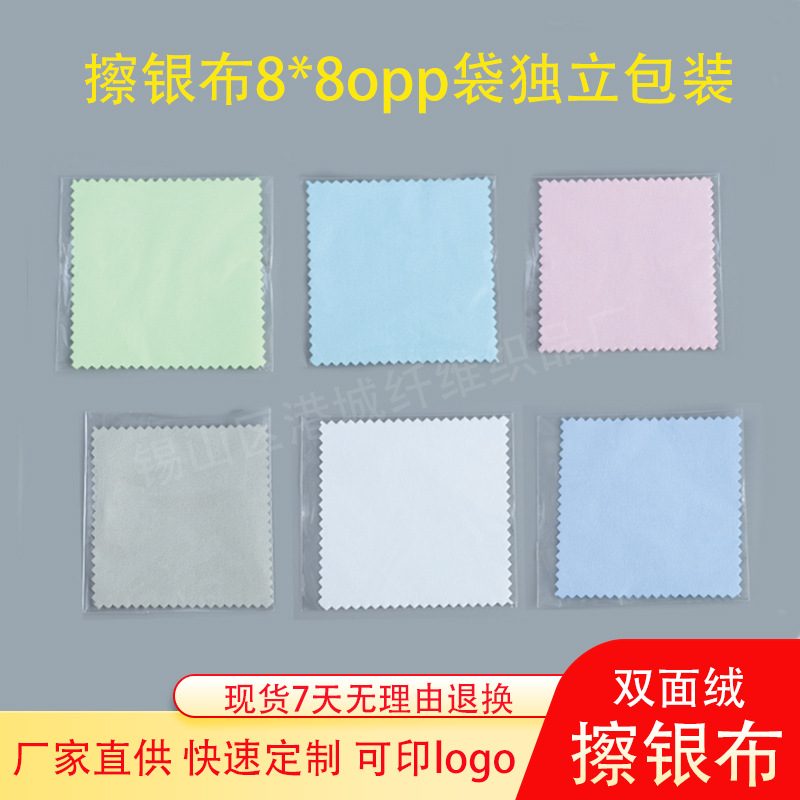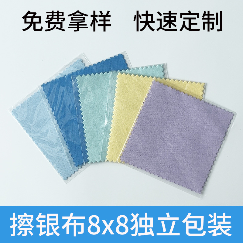 卸売り銀拭き布8*8独立包装小ロット研磨布スエードジュエリー布印刷ロゴ