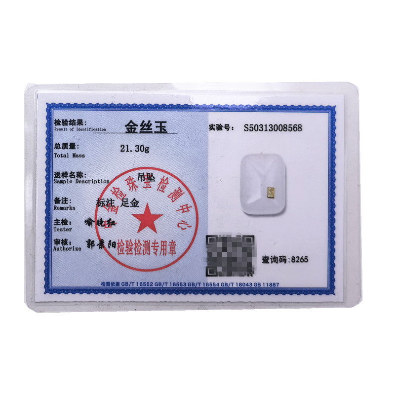 銀アクセサリー検査証明書水晶翡翠鑑定カード腕時計小葉紫檀朱砂省検査認証スキャンコード