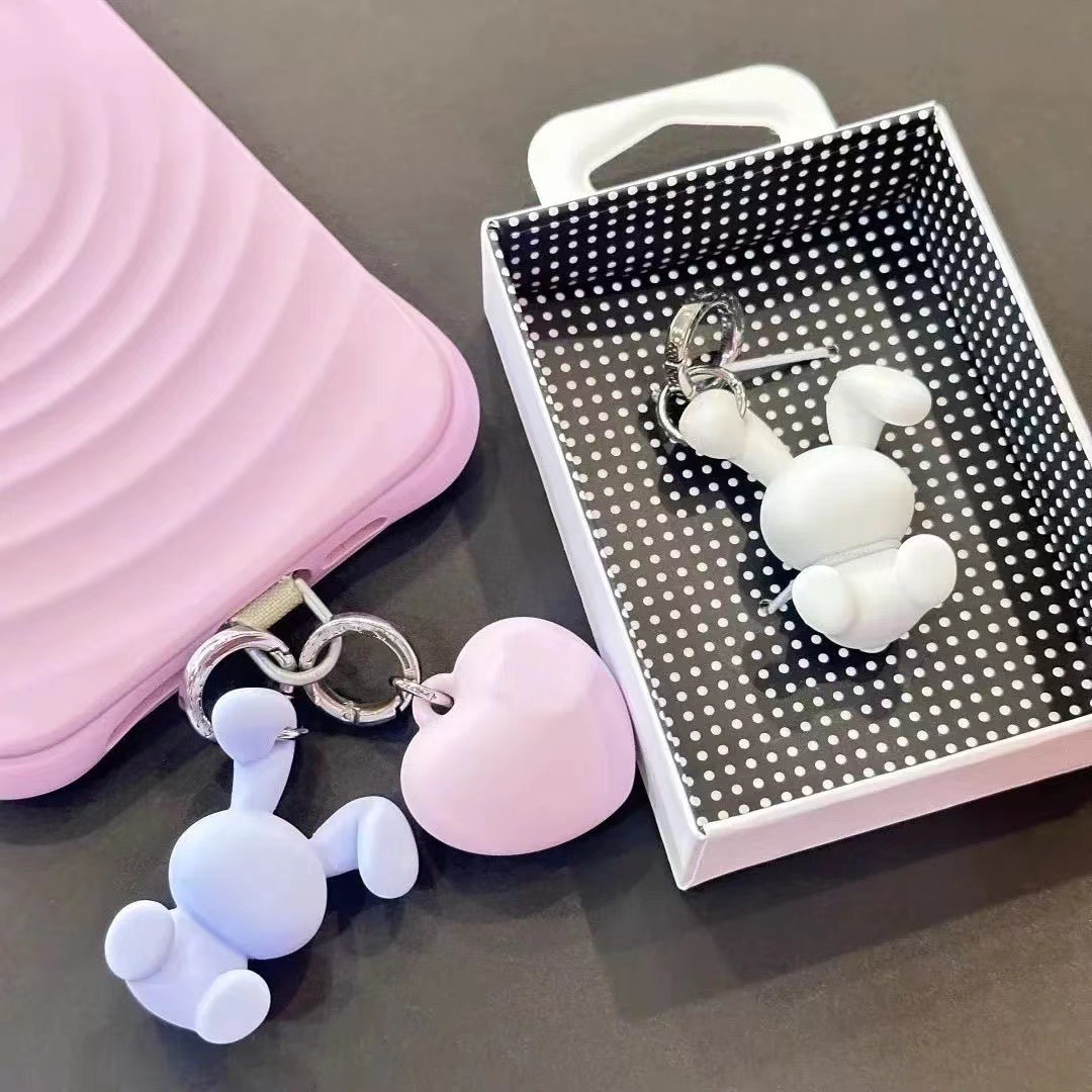 ケース新しいウサギのシリコーン愛ミニ粘着電話ケース装飾ペンダント多機能キーホルダーバックル女性のための