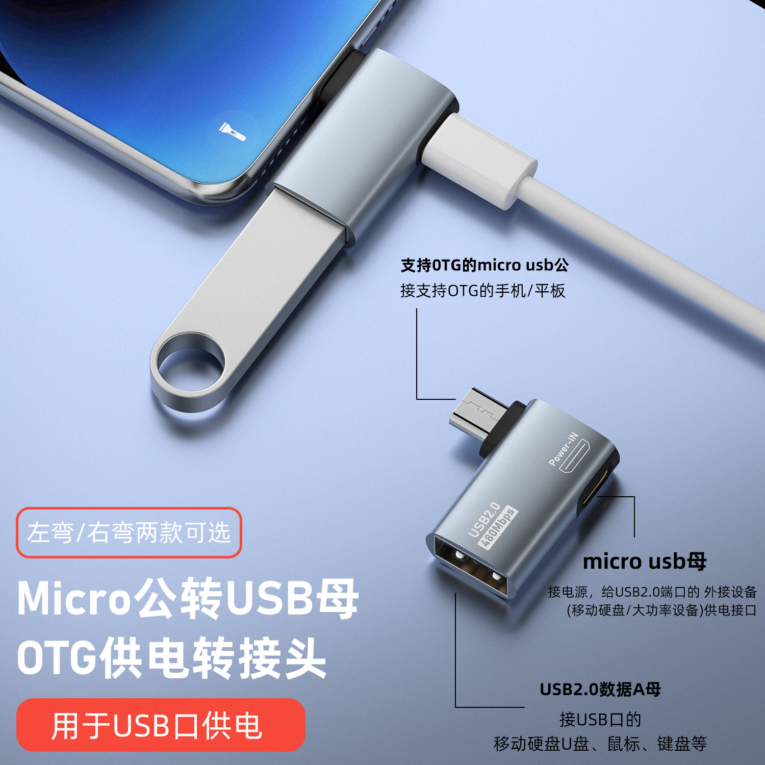 マイクロ公転USBメス携帯電話安卓OTGアダプタ電源付きエルボUSBハードディスクUSBデータ転送