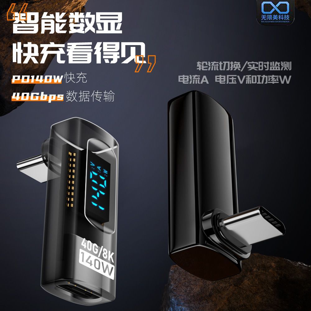 Type-c公転母アダプタ40gbps立体曲は雷4全機能L型デジタル表示付き転送に適しています