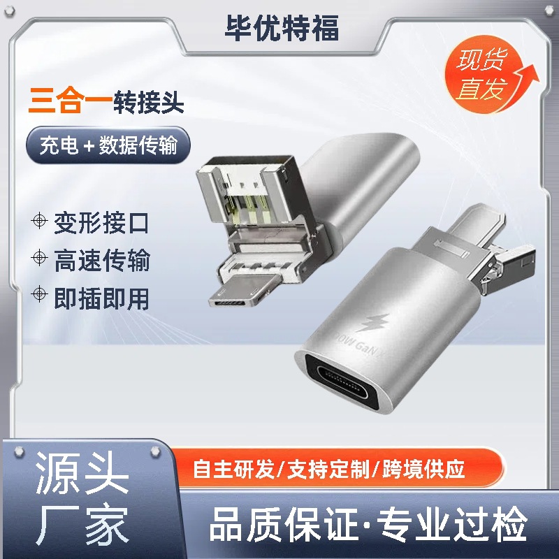 12世代円形マイクロ安卓磁気吸引アダプタ三合一急速充電TYPE-Cデータ磁気吸引変換ヘッド