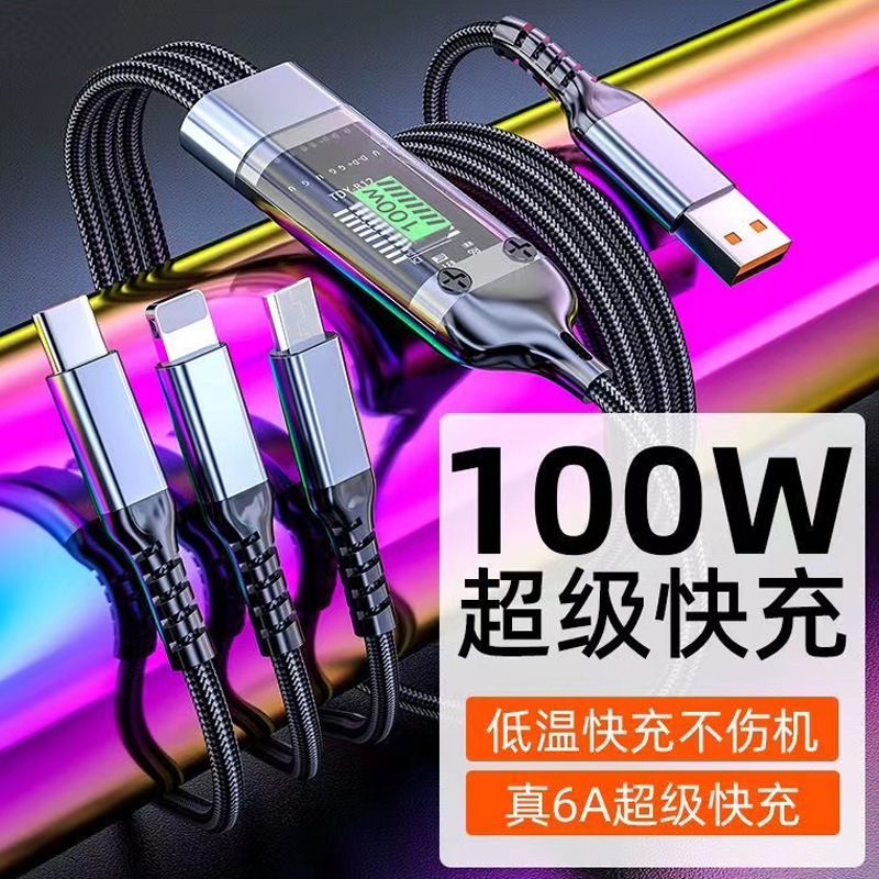 透明中カード100W透明灯三合一データ線超急速充電適用安卓華為一モップ三充電