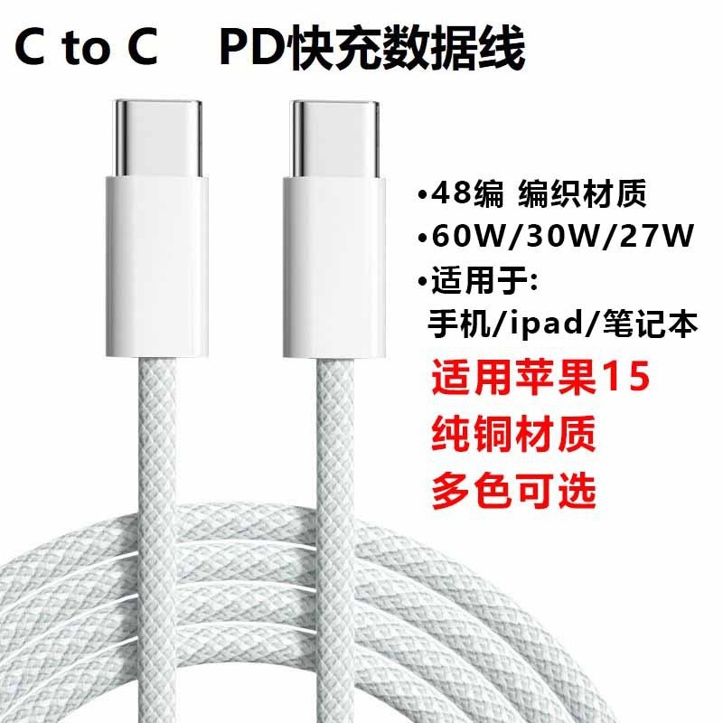 Pd急速充電データ線60w編組c to c適用華為急速充電リンゴ15米公対公双頭