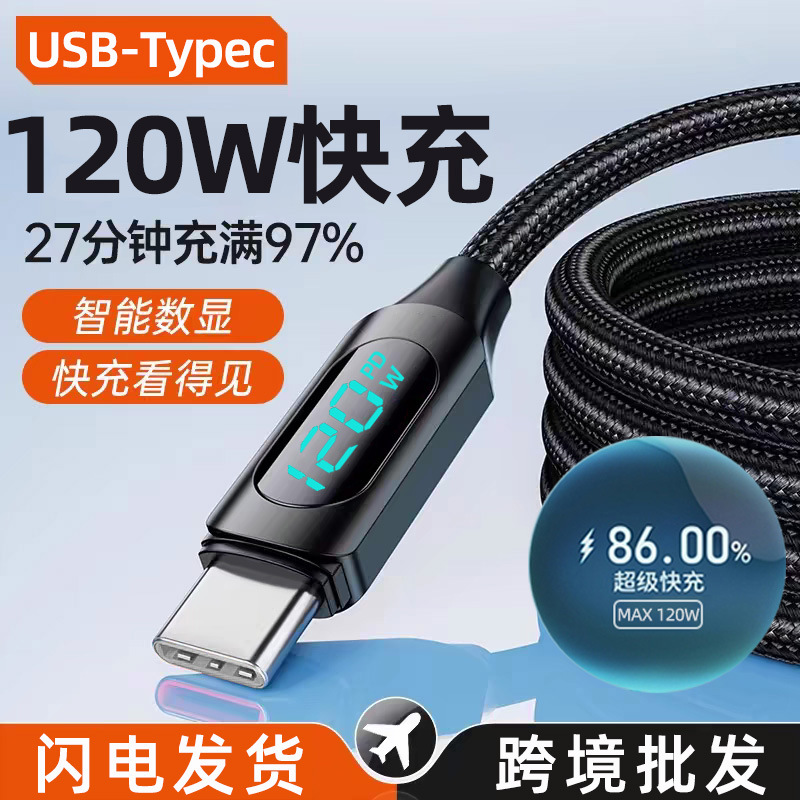 スマートデジタルディスプレイデュアル Type-c データケーブル 120W 超高速充電 Apple 16 Huawei ノートブック充電ケーブルに適しています