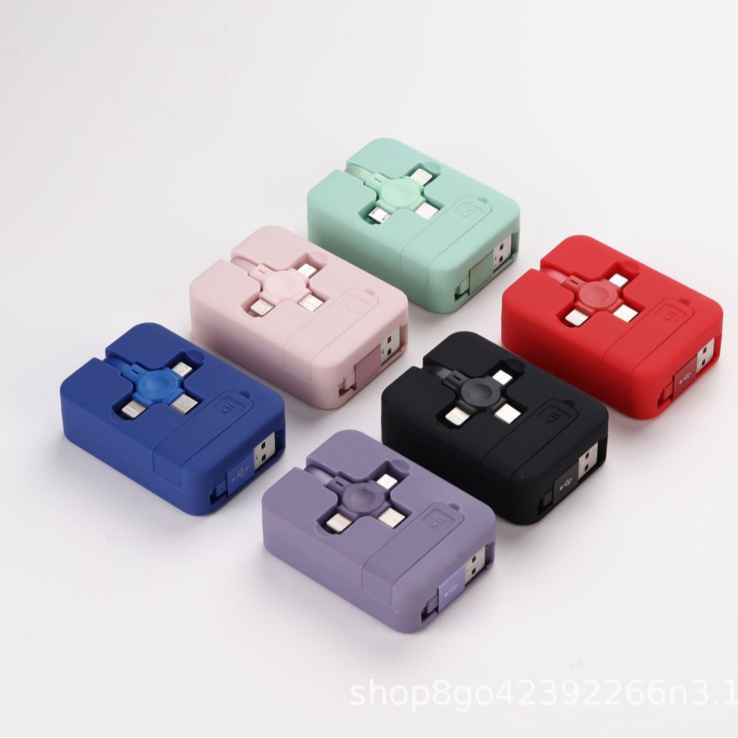 マカロン伸縮データケーブル三合一小プレゼント卸売り印刷ロゴ収納速充三引き三充電線