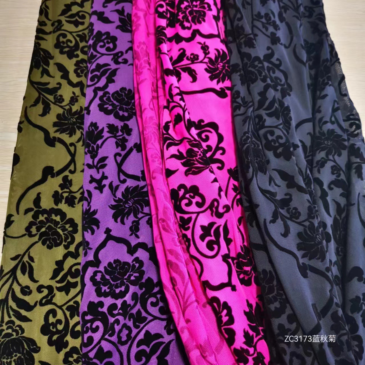 メーカー直販網布植毛花藍秋菊国標環耐洗水下着女装植毛生地