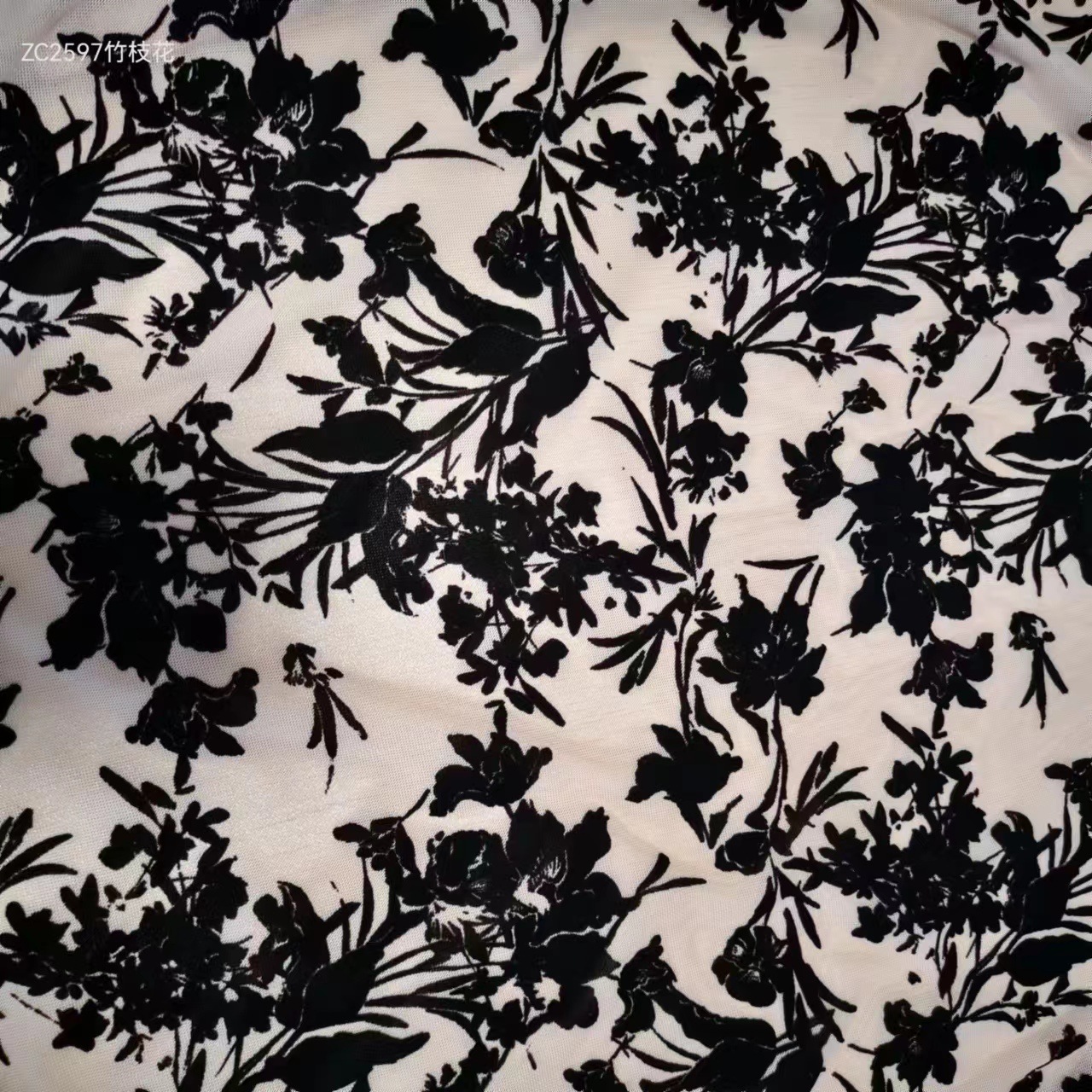 メーカー直販ネット布植毛竹枝花国標環境保護耐洗水下着女装植毛生地