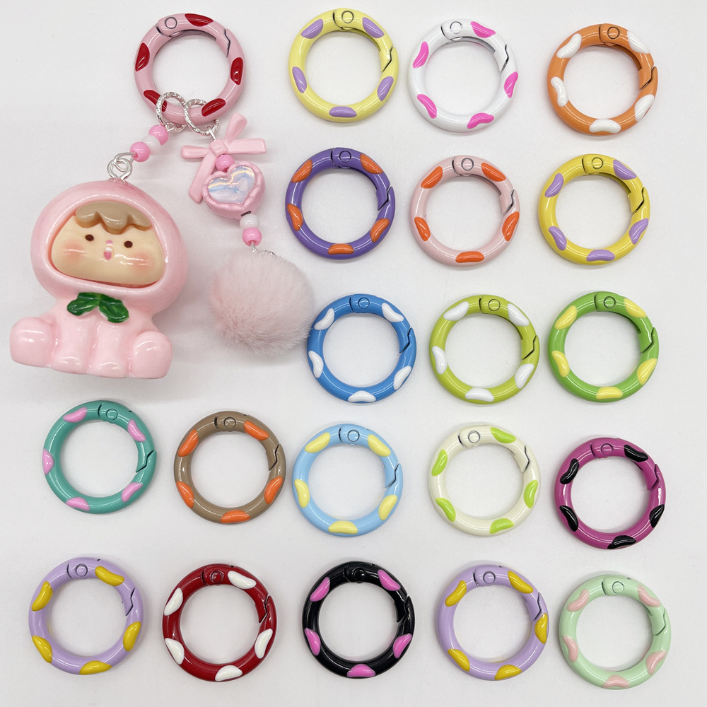 ドーナツスプリングバックルオープンリングカラースプリングリングキーホルダーdiyアクセサリーアクセサリーストラップブックサークルカードホルダー