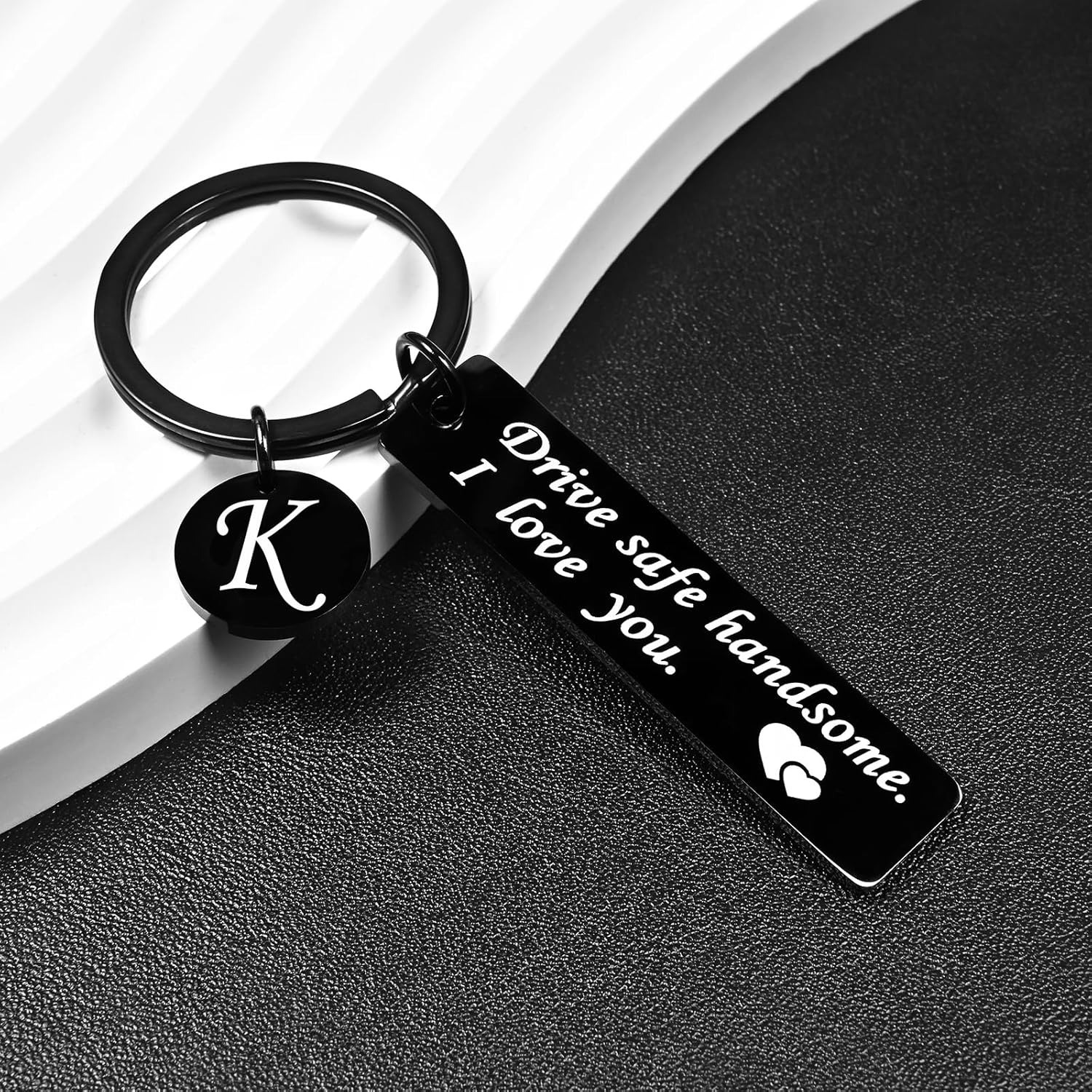 クロスボーダー起爆ステンレスキーホルダーDrive safe安全運転刻字26文字小円札掛け飾り