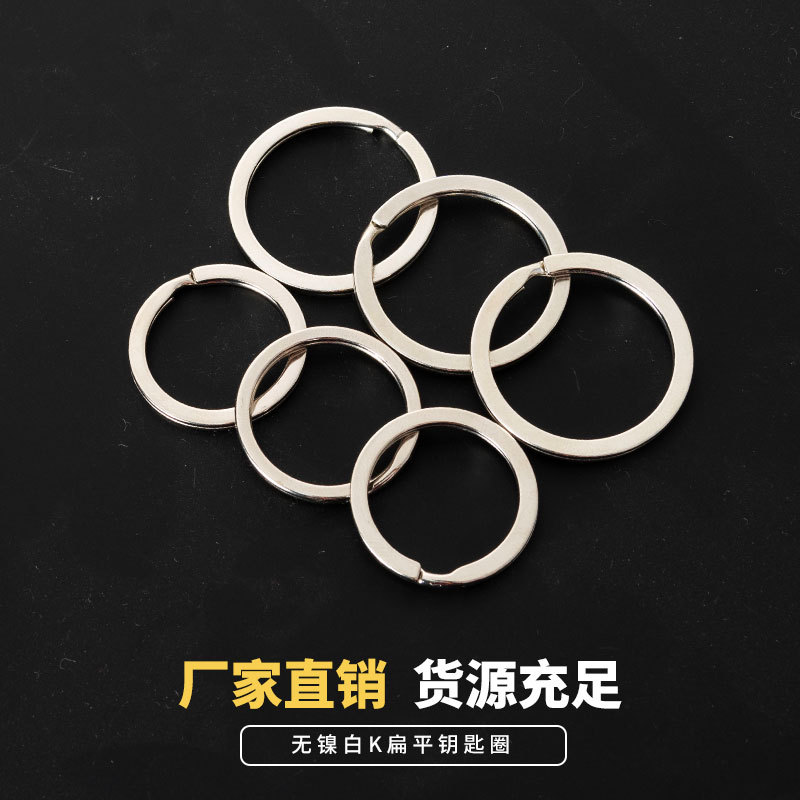 金属製キーリング、ニッケルメッキ、フラットリング、キーホルダー、アクセサリー、精巧
