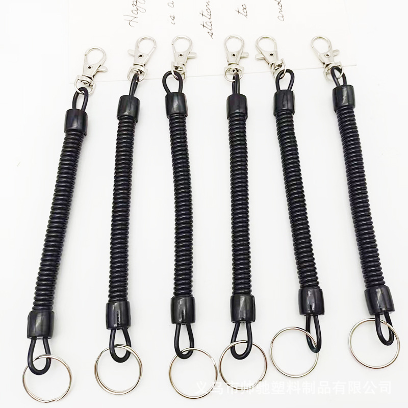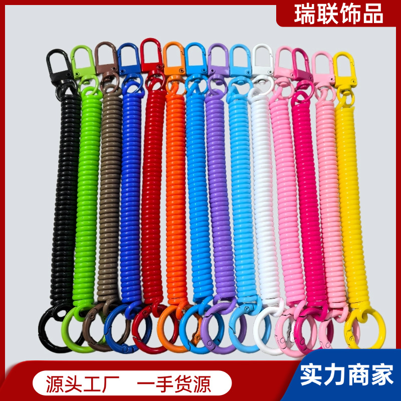 プラスチック製スプリングロープキーホルダー、塗装されたドアバックル、カードリング、紛失防止弾性ストラップ、カラフルな合金スプリングロープキーホルダー