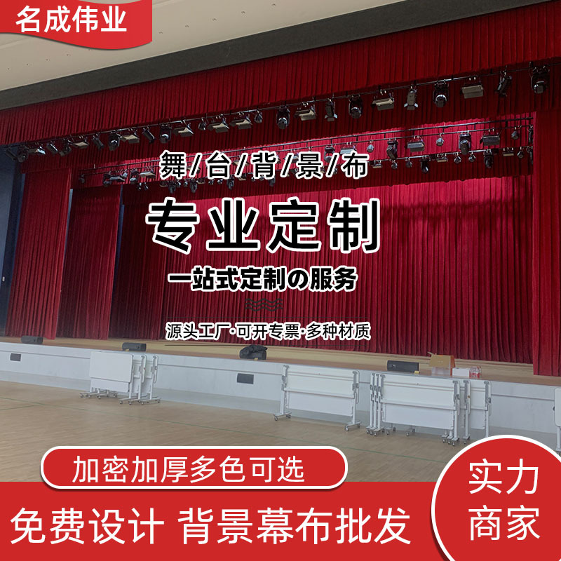 舞台幕布B1級防火難燃性ベルベット生地講堂劇場公演用完成品大幕工場直販完全遮光
