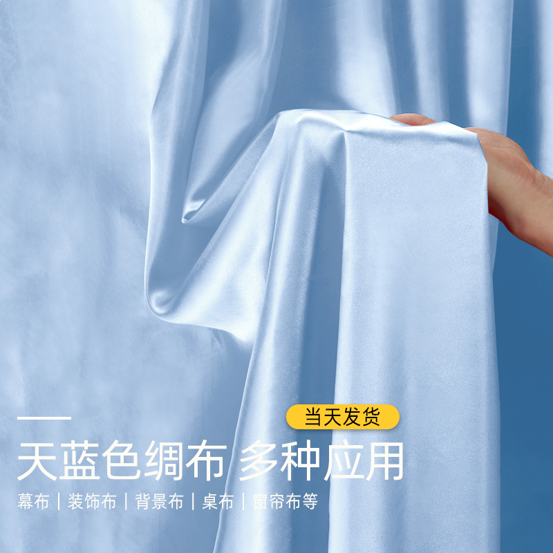 スカイブルー光沢のあるサテン生地シルク生地ステージカーテンギフトボックス裏地写真撮影の背景布クリアランス処理