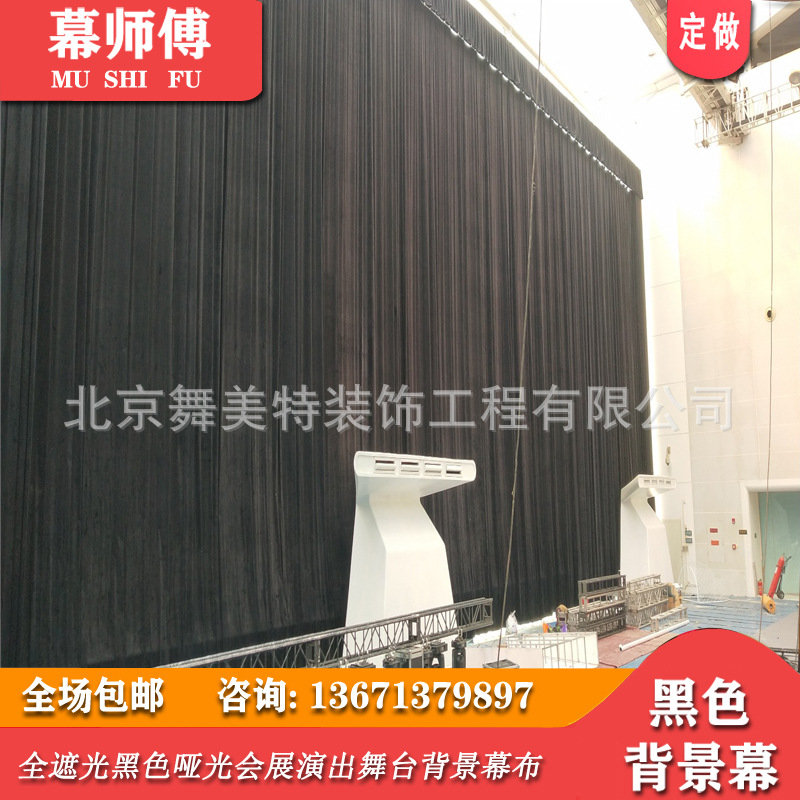 遮光布ステージカーテン卸売黒サテン背景布黒布映画館肥厚遮光布サテンラボ