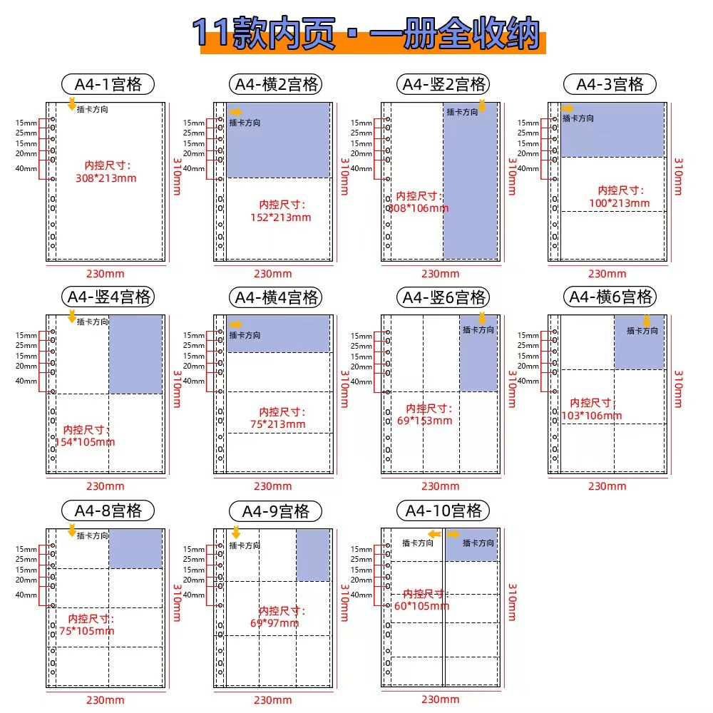 4穴A4九宮格pp透明4格カードカードスターアニメpp収納帳アルバムA5カードブック内ページ