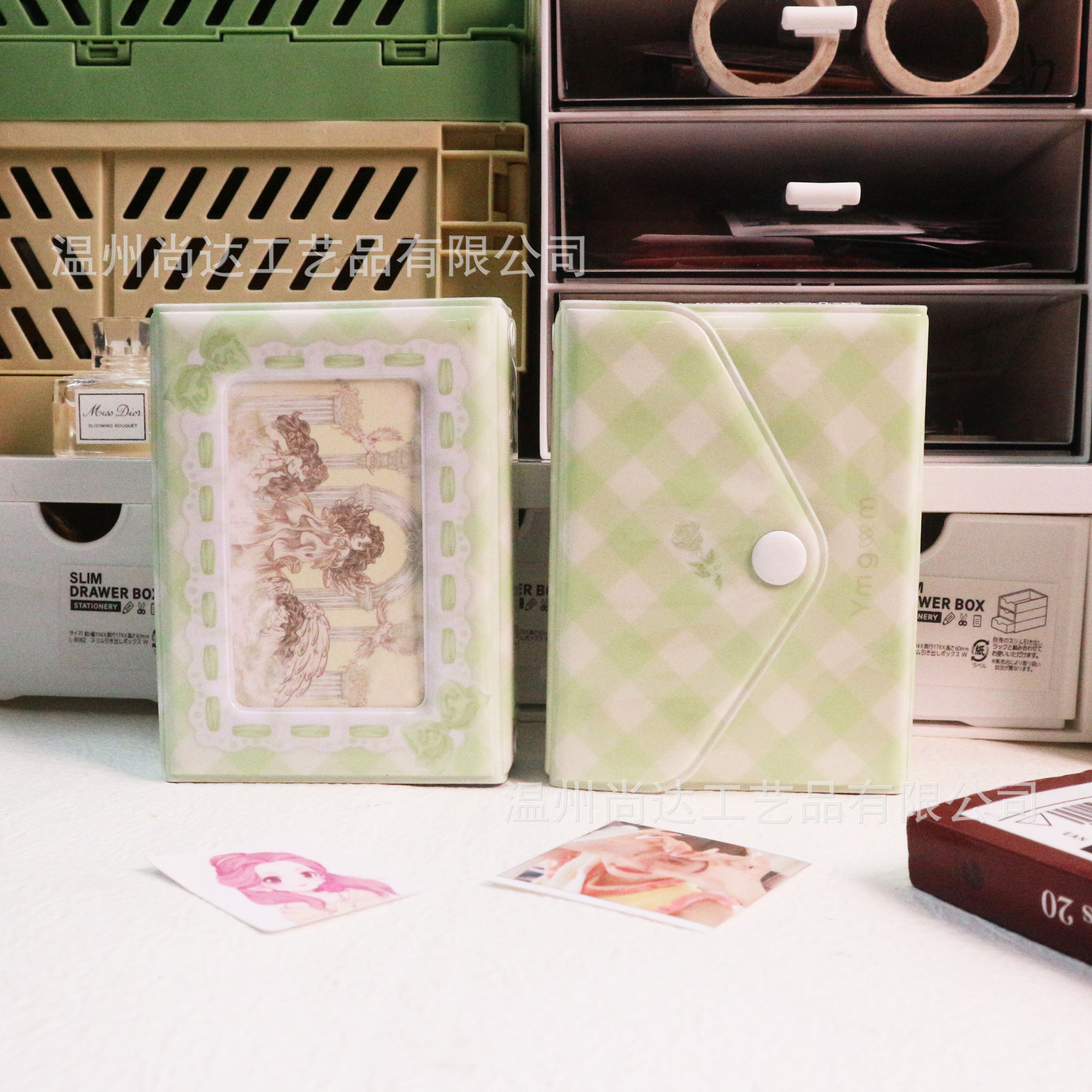 工場直販 A5 四方格子 グリーン油絵 蝶 シンプル 3inch アイドルカード ストレージブック ルーズリーフカードブック