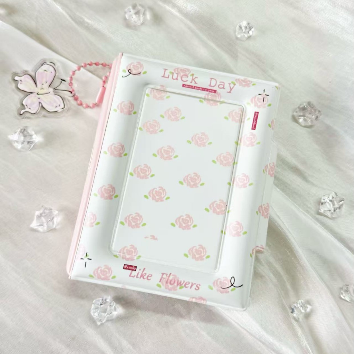 追星収納カードアルバムフォトアルバム 3inch 一宮格透明内ページ ローズフラワー布製カバー 小型カード 追星必需品