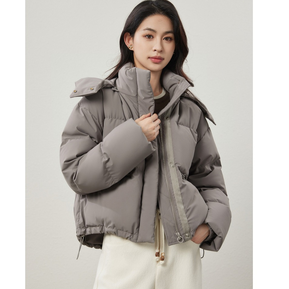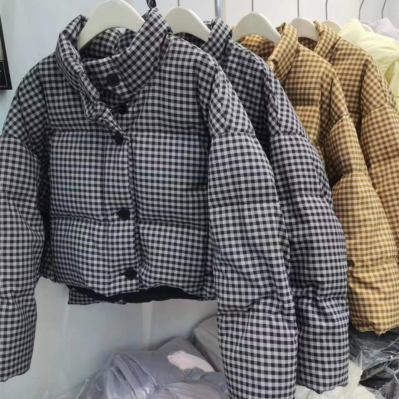 現物の短いダウンジャケットの女性は冬に2024の新型の爆発的な流行の白い小柄なコートに袋を貼って襟を立てます。