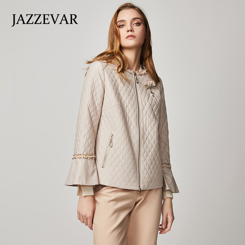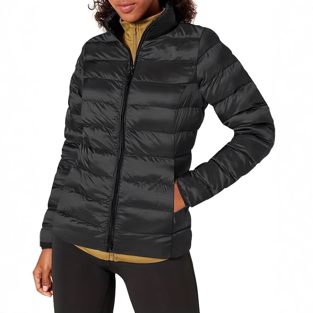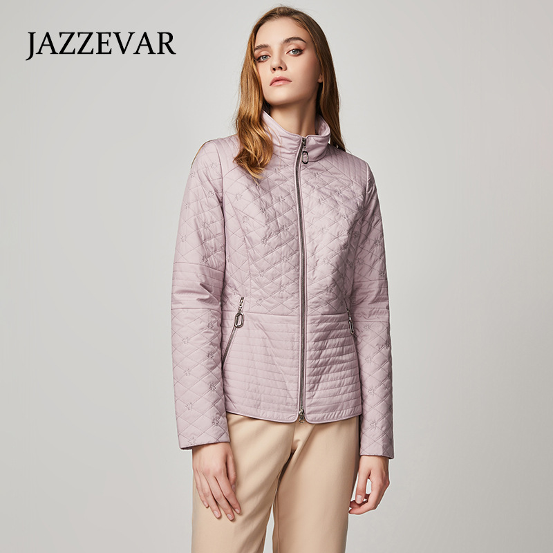 カスタマイズされた2025春と秋の新しい軽量レディースダウンジャケット、暖かく防水性のあるカジュアルで多用途なスタンドカラーレディースジャケットを加工します。