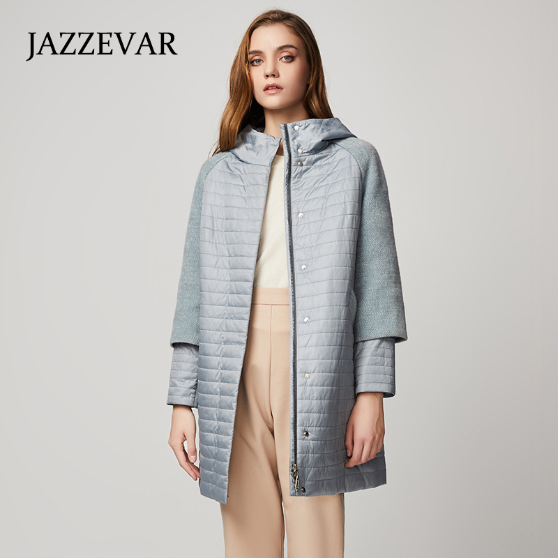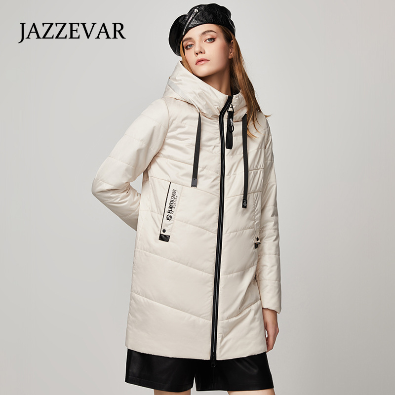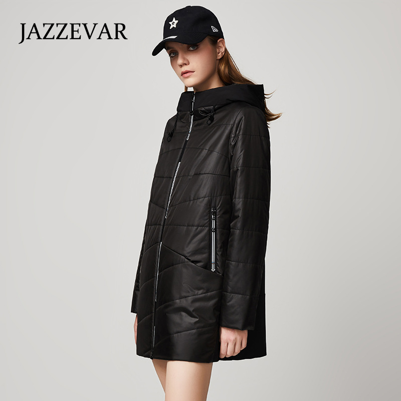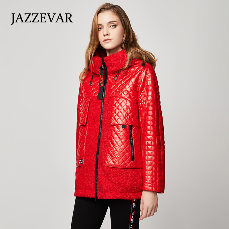 冬の女性は帽子付きのダウンジャケットをカスタマイズします。
