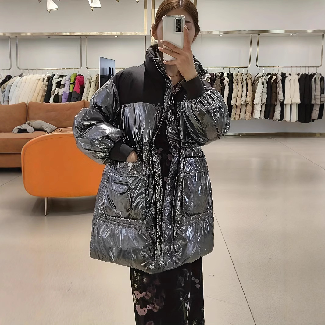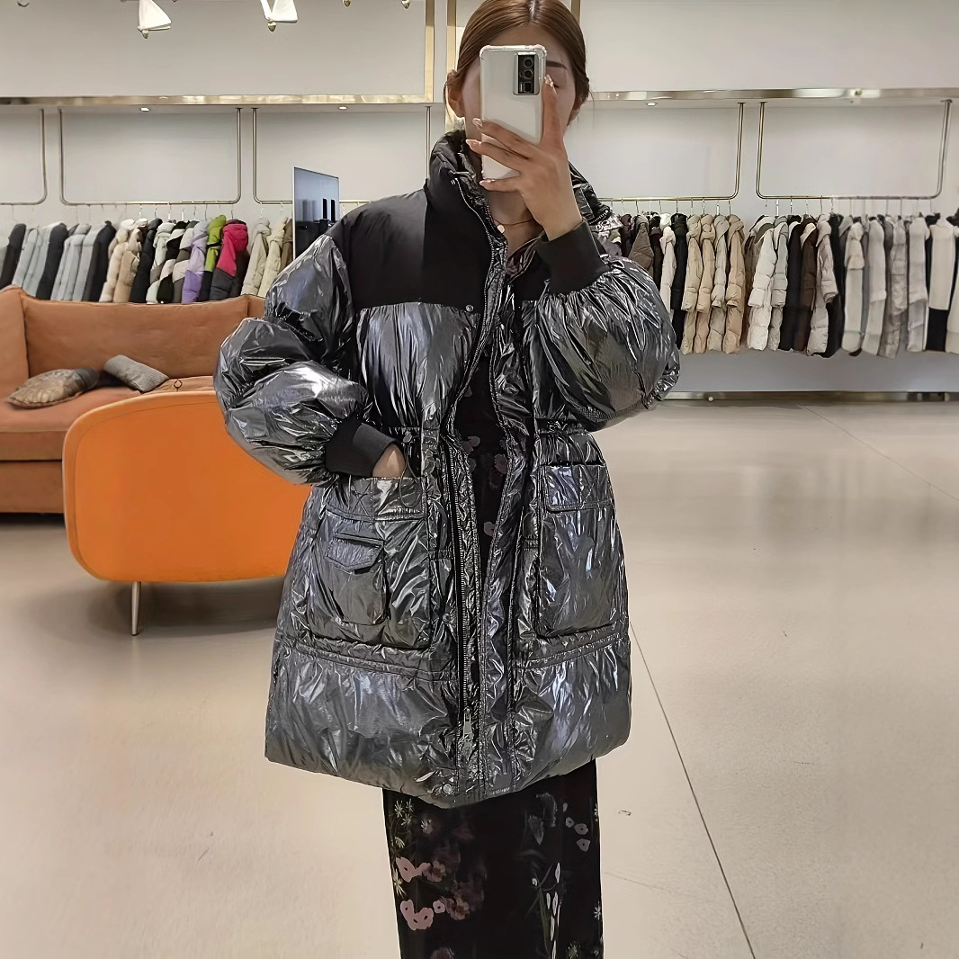 韓国版冬服2022年新作女性韓国版ゆるい大きいサイズ文芸裾巾着袋カバーポケットダウンジャケット潮