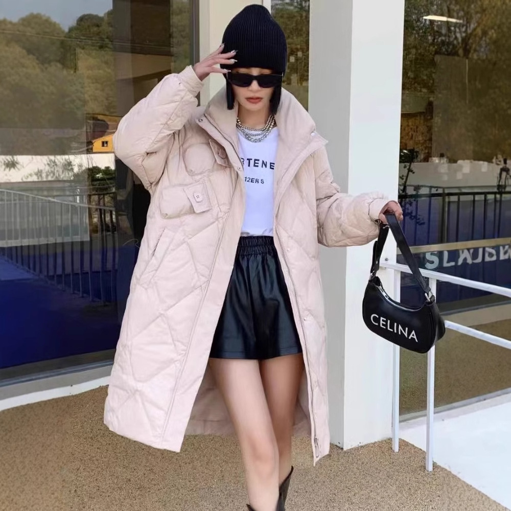 2024冬の新商品の中で膝を超えたダウンジャケットの女性の立襟は厚くてゆったりしています。