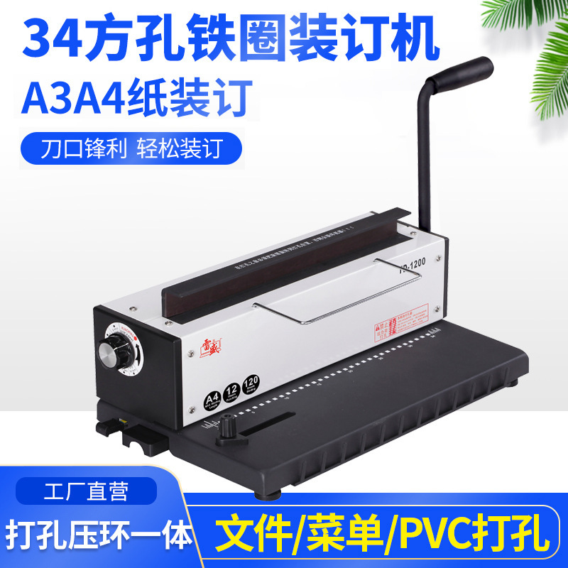 製本機パンチングマシン手動鉄リング製本機Lei Sheng TD-1200ダブル鉄リング34角穴パンチングマシンA3A4