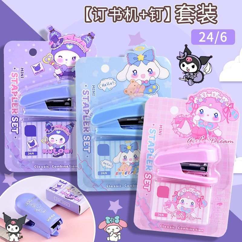 クロミ ミニホッチキスセット 学生用 小型 ネイル付き メロディー ポータブルホッチキス 製本機