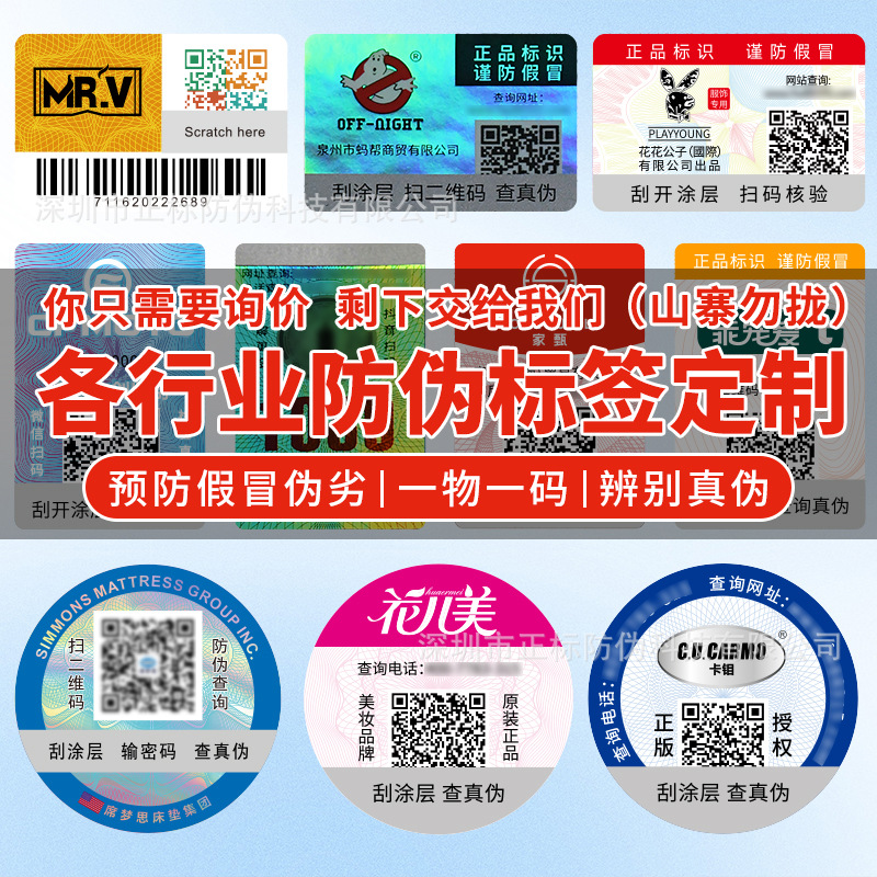 偽造防止ラベル偽造防止コードトレース印刷二次元コード偽造防止標準品一枚一枚偽造防止商標メーカー