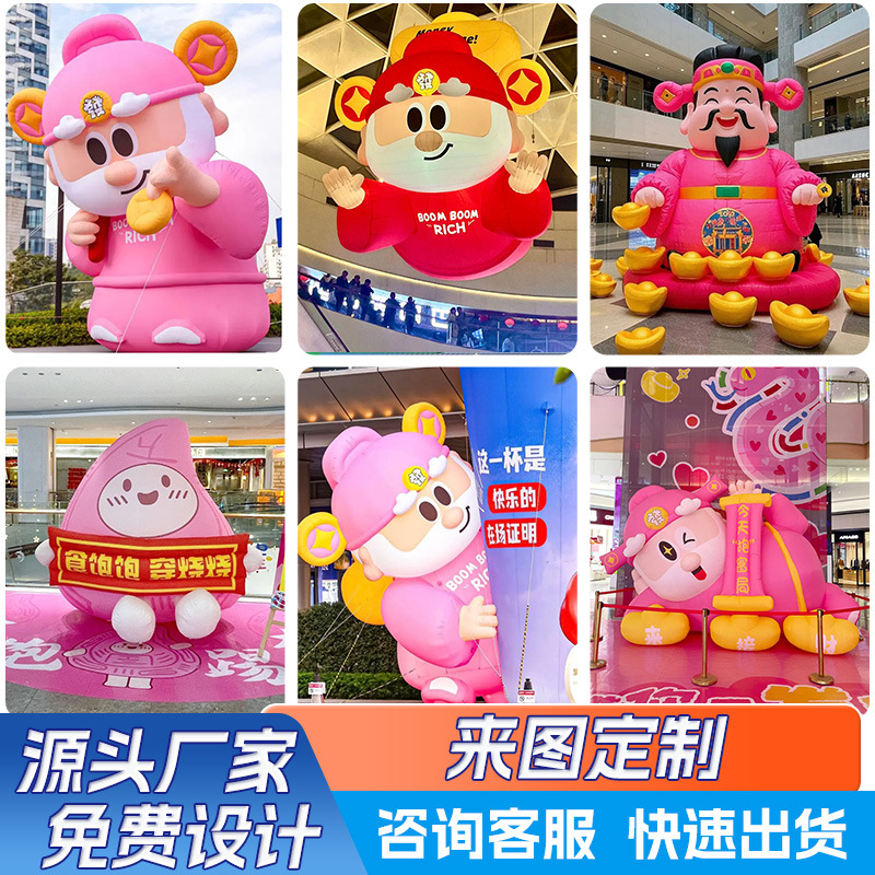インフレータブル福神エアモデル、カスタム漫画マスコット、大型開店祝い、舞踏者、手を振る、閉じた口の模型、エアフィルム、富を呼び込む