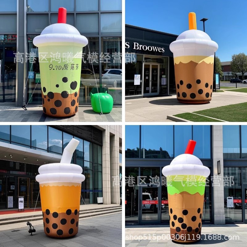 空気入りミルクティーの空気型は真珠ミルクティーのコーヒーカップの空気型の広告ミルクティーの屋外の美陳の飲み物の瓶をシミュレーションします。