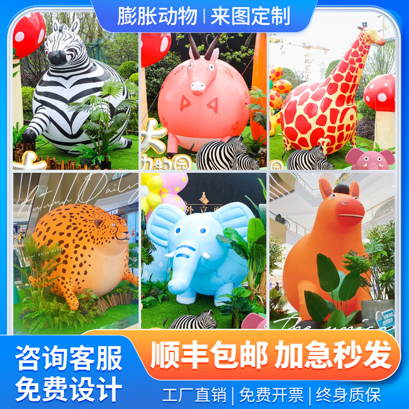 空気入れ膨張動物園の空気モデルが光る太った漫画キリンシマウマ象豹模型屋外デパート美陳