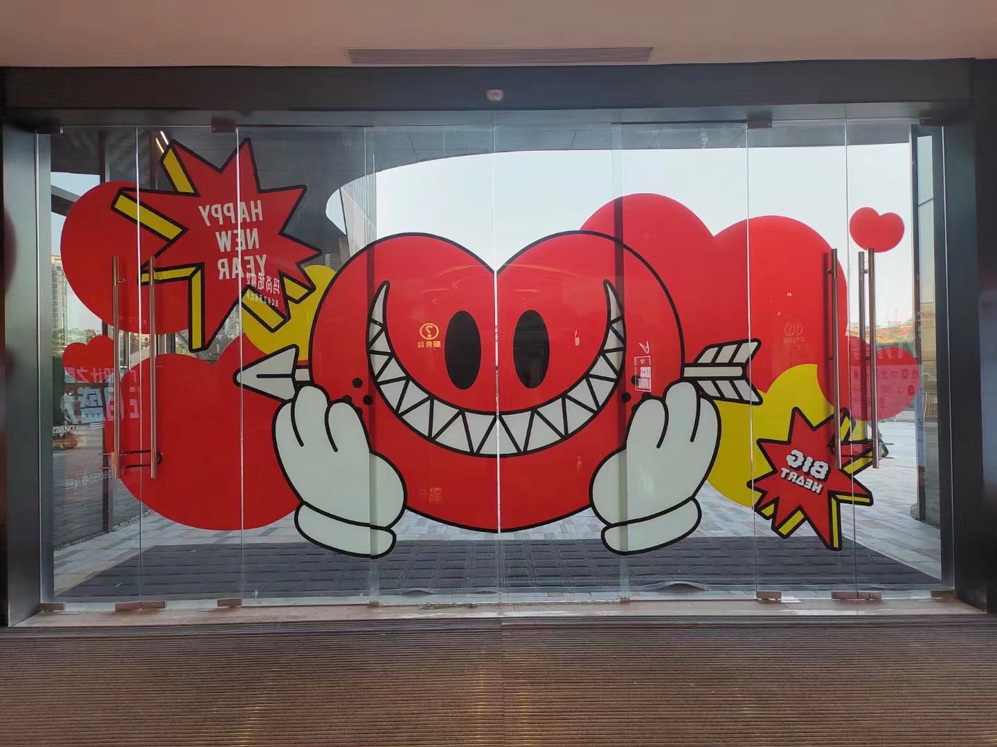 ハイビジョンの店のガラスは屋外の車を貼って写真を移動することができます。