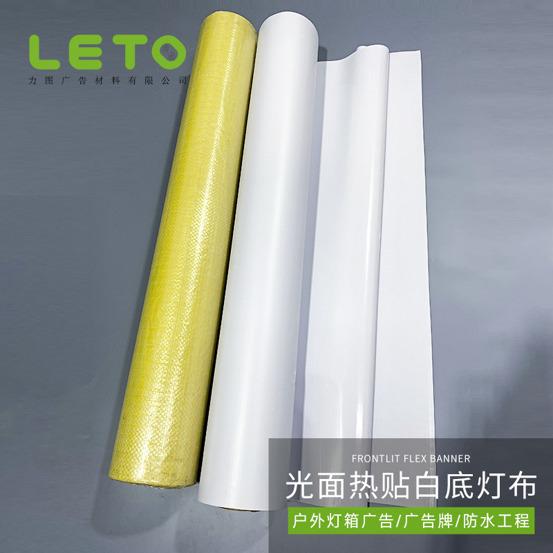 メーカー直供光面白地スプレー布440g熱貼り500d条灯箱布広告布