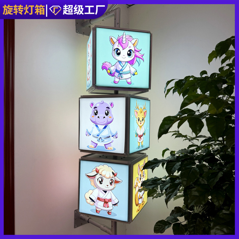 屋外縦型着地移動角型回転ランプハウス多層組四面抽出画スクロール看板