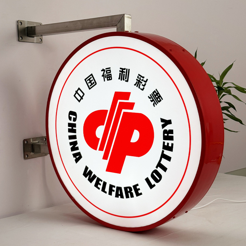新しい円形の中国の福祉の宝くじのライトボックスの広告の看板の屋外の入り口の側は両面の壁の発光のアクリルを掛けます。