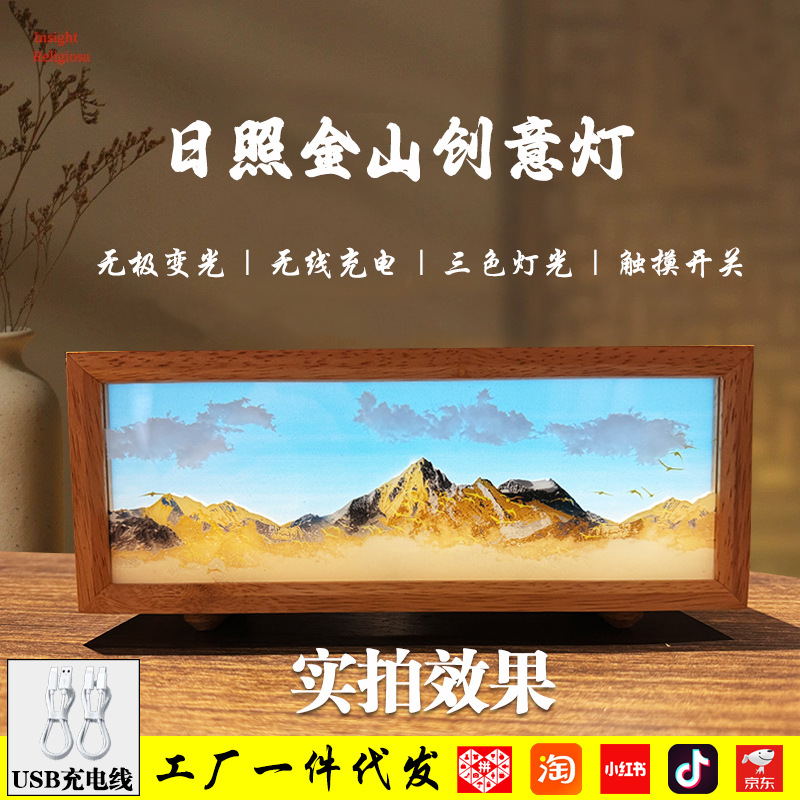 文創日照金山夜灯代件新年プレゼント木製雰囲気電気スタンドバレンタインデー新婚ギフトボックス