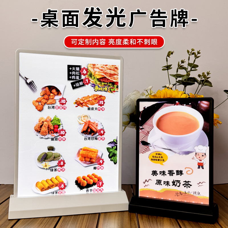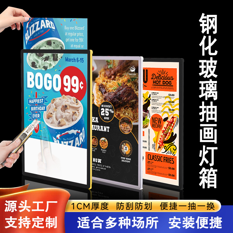 Led超薄灯箱メーカー広告看板強化ガラスポスター装飾室内ミルクティー店注文露店看板