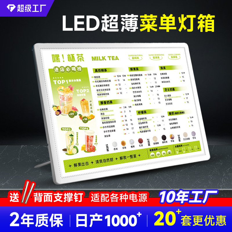 ミルクティー店A4メニュー展示ブランド価格表デスクトップバー展示棚発光LED広告ライトボックス注文カード