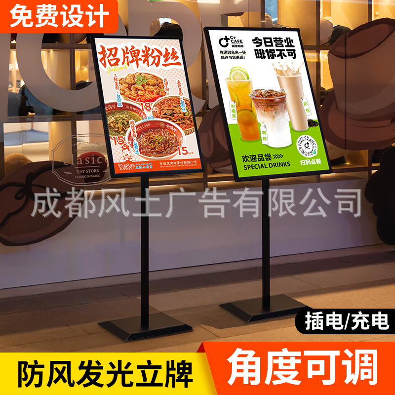 超薄型ライトボックス広告看板縦型床置き式玄関発光展示看板屋外充電移動ポスター展示棚