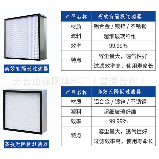 アルミフレーム パーティションなし パーティション付き 高効率フィルター グラスファイバー 大風量 プラスチックフレーム ボックス型低エフィシエントフィルター