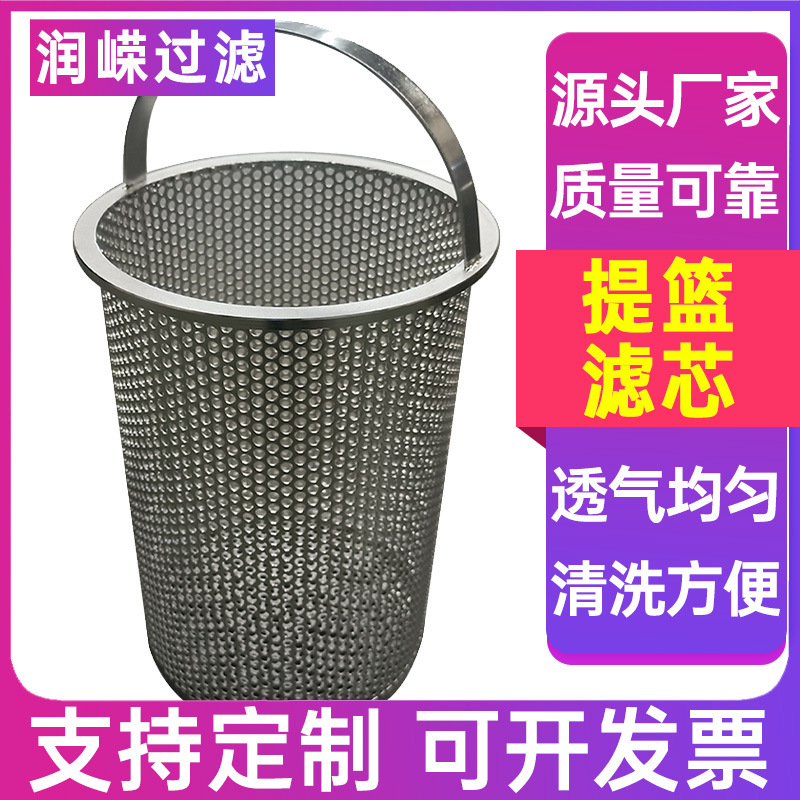 炭素鋼材質バスケットエレメントパンチングバスケット濾過筒バスケット式フィルタエレメント平口バスケットフィルタ