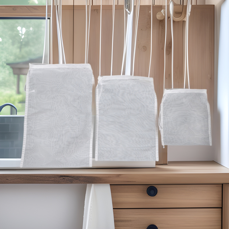 ナイロン豆乳フィルターバッグ、ジュース残留物分離水絞りバッグ、ナッツミルクガーゼメッシュふるい、高温耐性フィルターバッグ