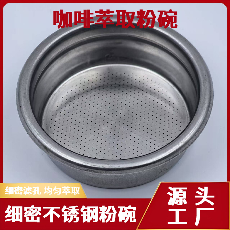 エスプレッソマシン 304 ステンレス鋼フィルターシングルおよびダブルパウダーカップ抽出ヘッドフィルター底なしハンドルパウダーボウルパウダートレイ