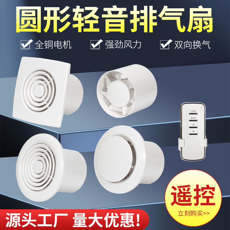 壁窓式円形排気ファントイレ換気扇家庭用静音排気ファン双方向リモコン逆止弁付き