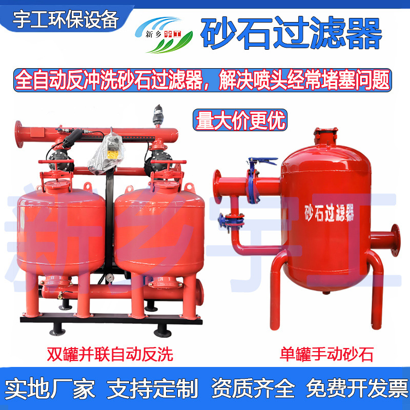 点滴灌漑、スプレー灌漑、農業灌漑、スチールフィルター、全自動逆洗砂利積層フィルター、水と肥料の統合