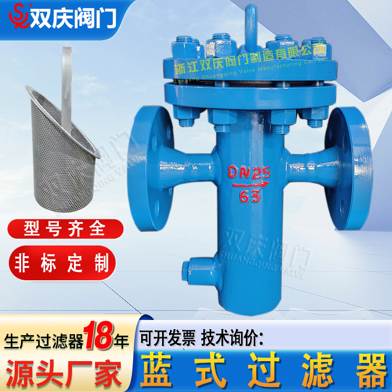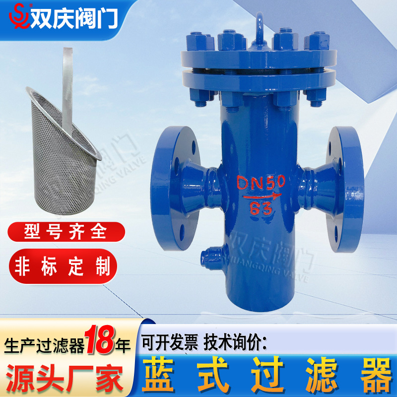 双慶直通式バスケットフィルター新型液体毛髪収集器鋳鋼快開重型ブルーフィルター