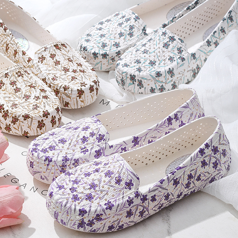 四季のサンダルの女性の看護師のサンダルのプリントの平底の透かし彫りの穴の靴の女性の広場のダンスのお母さんの靴の仕事のサンダルの女性