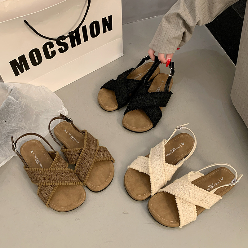 アウターウェアファッションクロスニッチローマンシューズレディース2024新作夏万能フェアリースタイル厚底サンダル